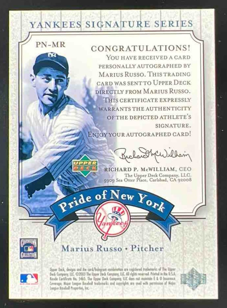 2003 Upper Deck Yankees Signature Series Pride of New York Marius Russo RC Auto