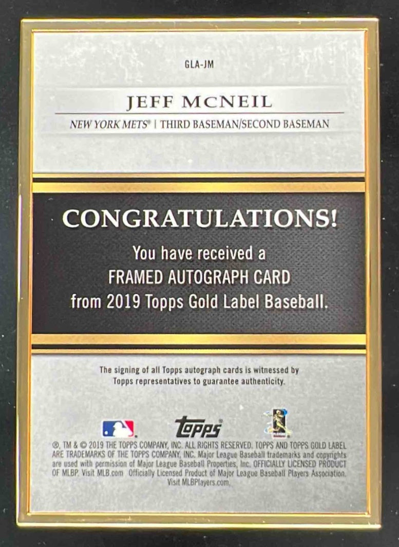 2019 Topps Gold Label Framed Autograph #GLA-JM Jeff McNeil RC Auto