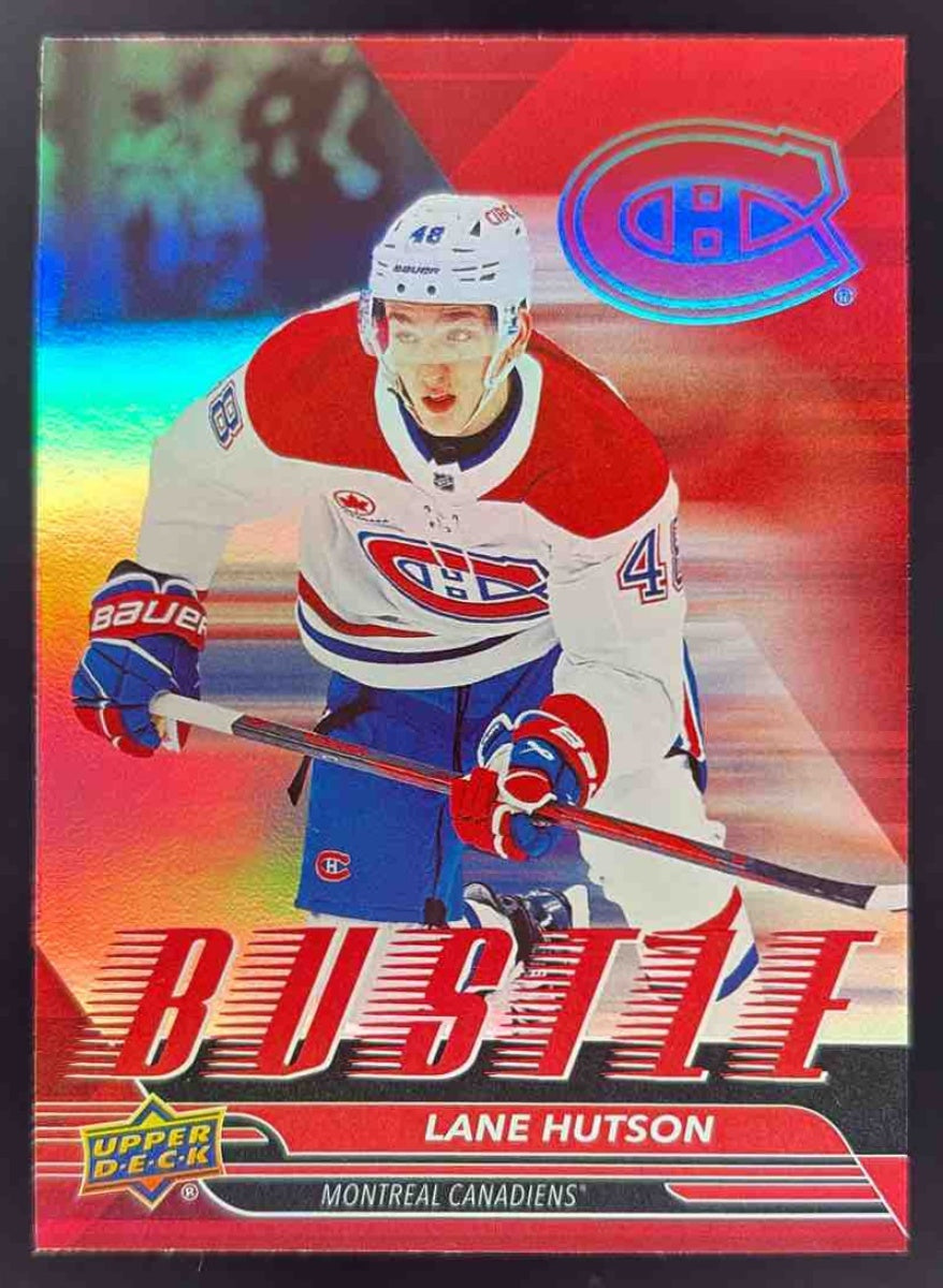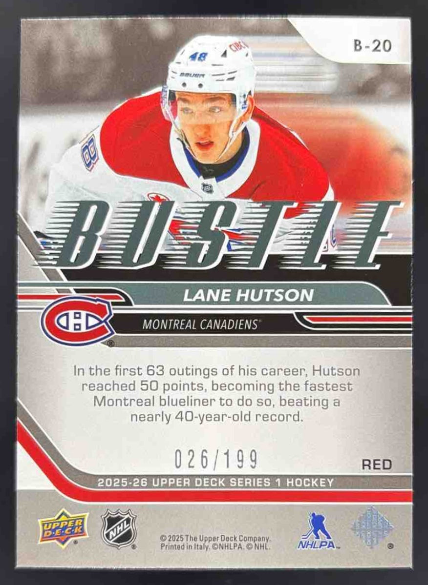 2025 Upper Deck Series 1 Bustle Red #B-20 Lane Hutson /199