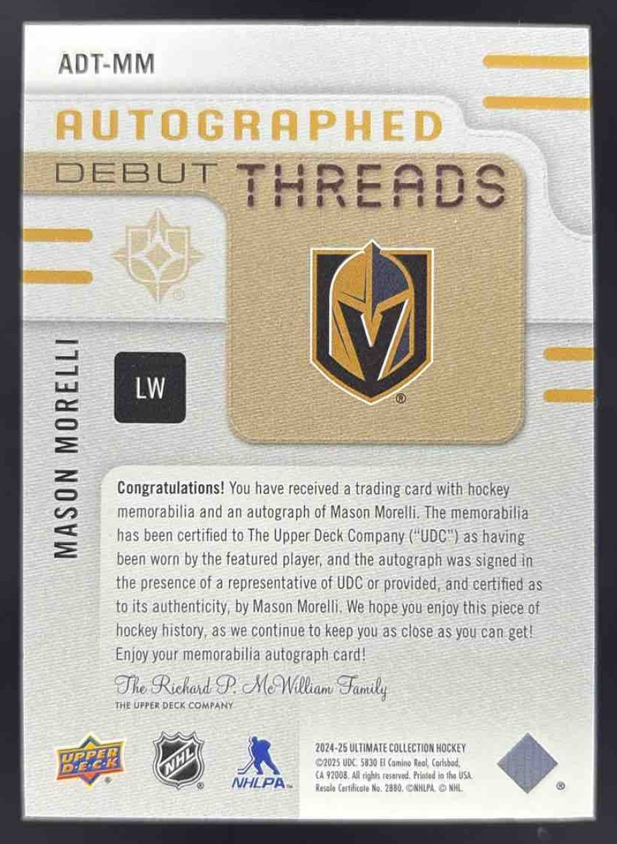 2024-25 Ultimate Collection Debut Threads #ADT-MM Mason Morelli RC Auto /199
