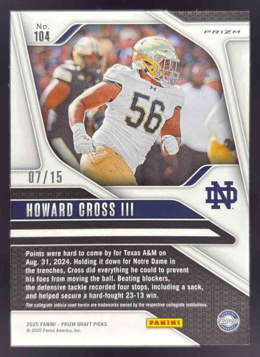 2025 Panini Prizm Draft Picks Gold Shimmer Prizm #104 Howard Cross III RC /15