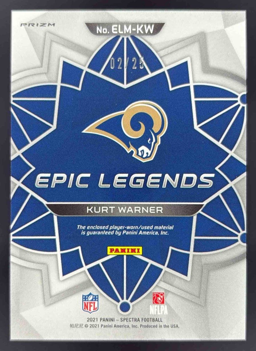 2021 Panini Spectra Epic Legends Materials Hyper #ELM-KW Kurt Warner /25