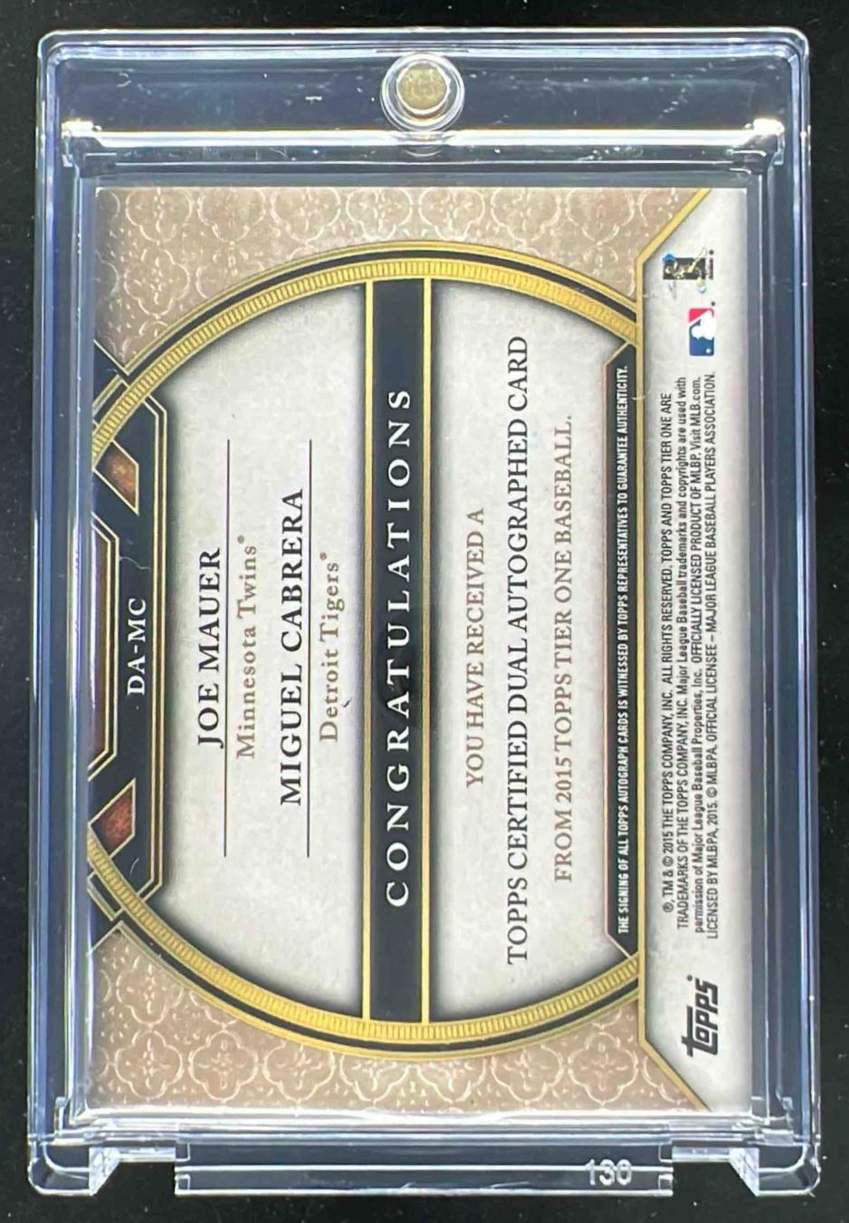 2015 Topps Tier One Dual Autographs #DA-MC Miguel Cabrera Joe Mauer Auto /25