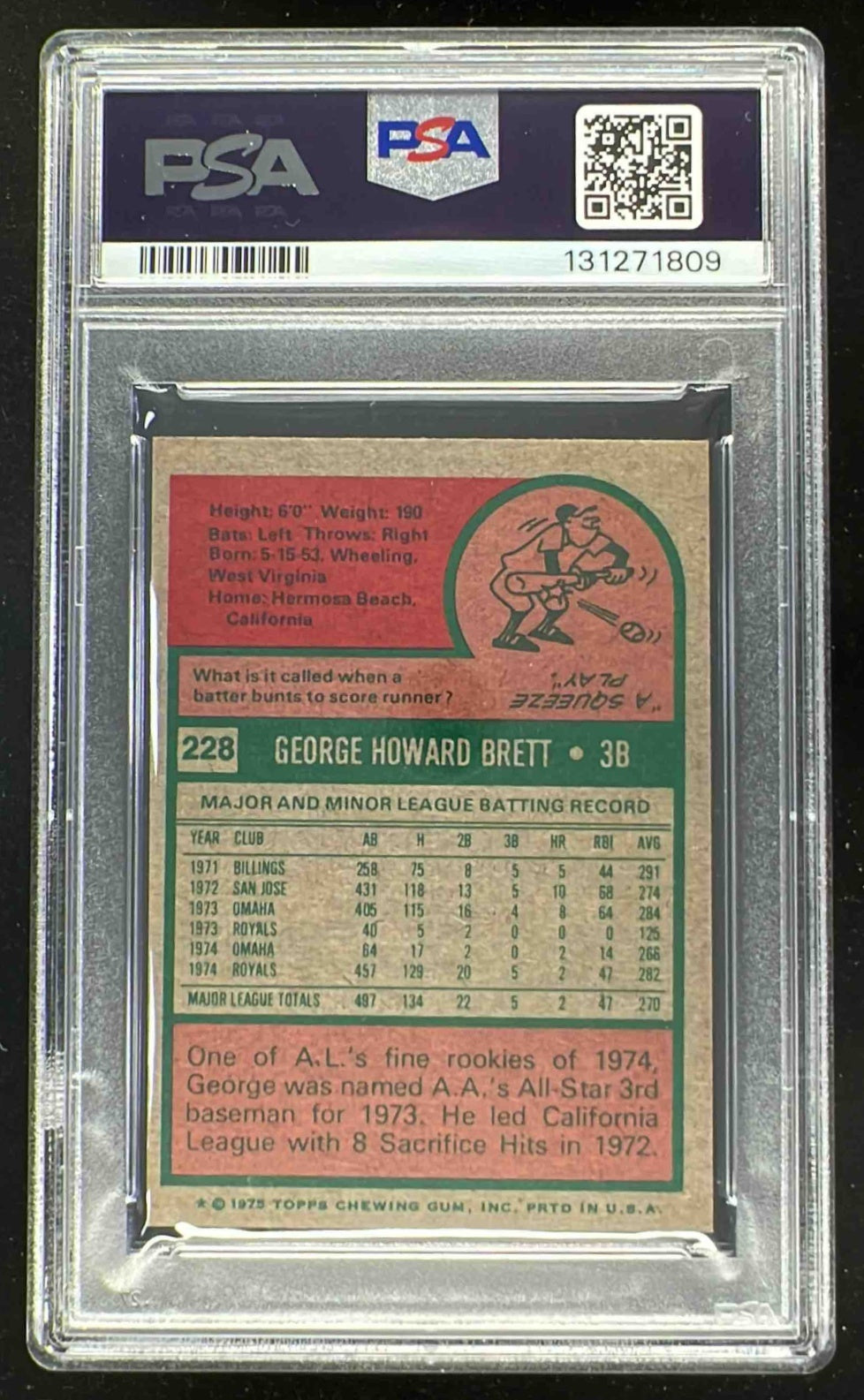 1975 Topps Mini #228 George Brett RC PSA 8