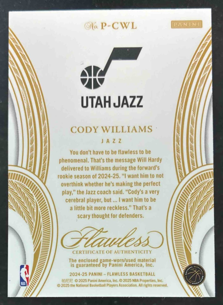 2024-25 Panini Flawless Patches Ruby #6 Cody Williams RC /15