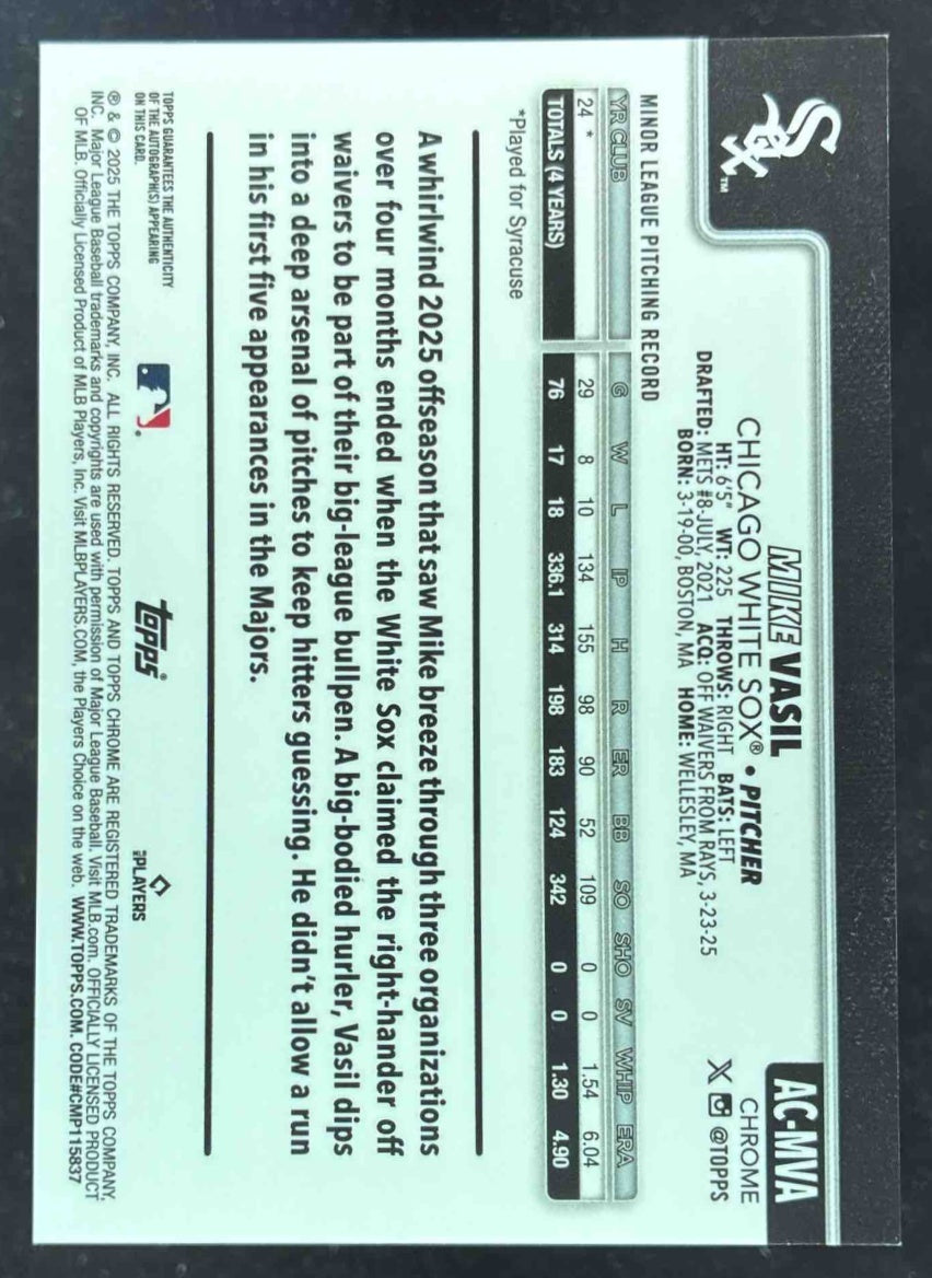2025 Topps Chrome Update Autograph Gold Refractor #AC-MVA Mike Vasil RC Auto /50