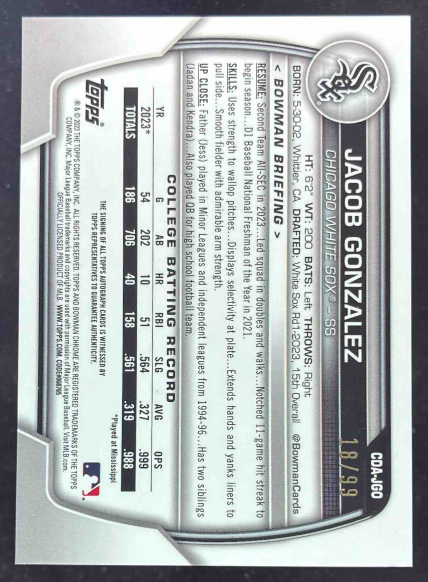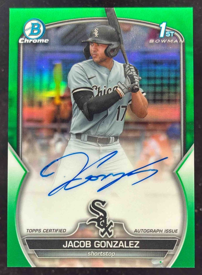 2023 Bowman Draft Chrome Green Refractor #CDA-JGO Jacob Gonzalez RC Auto /99