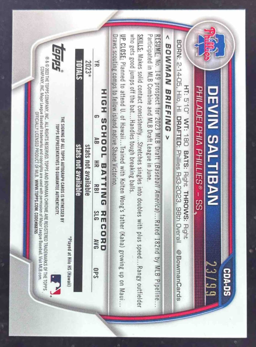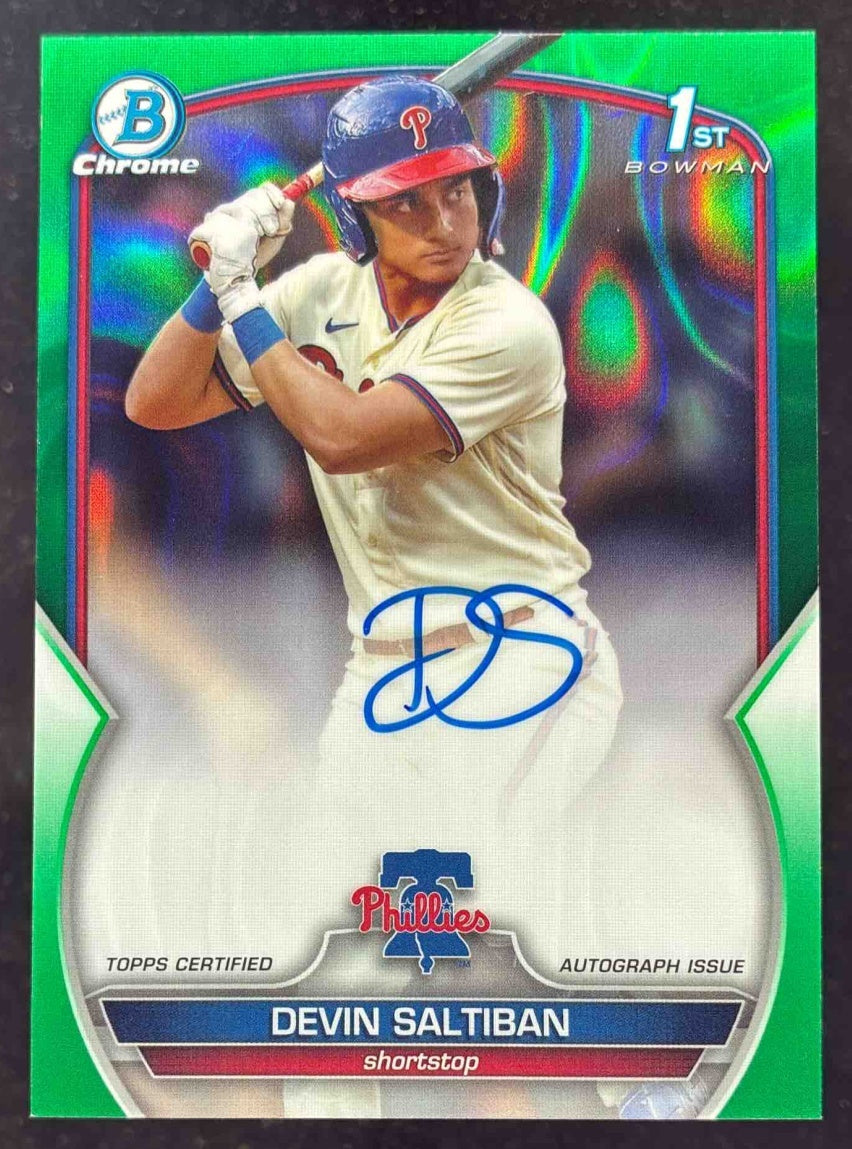 2023 Bowman Draft Chrome Green Lava Refractor #CDA-DS Devin Saltiban RC Auto /99