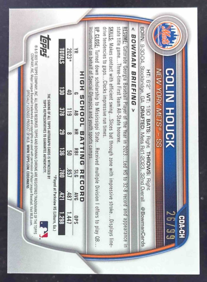 2023 Bowman Draft Chrome Green Lava Refractor #CDA-CH Colin Houck RC Auto /99
