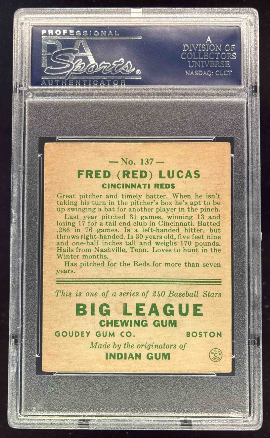 1933 Goudey #137 Red Lucas RC PSA 4.5