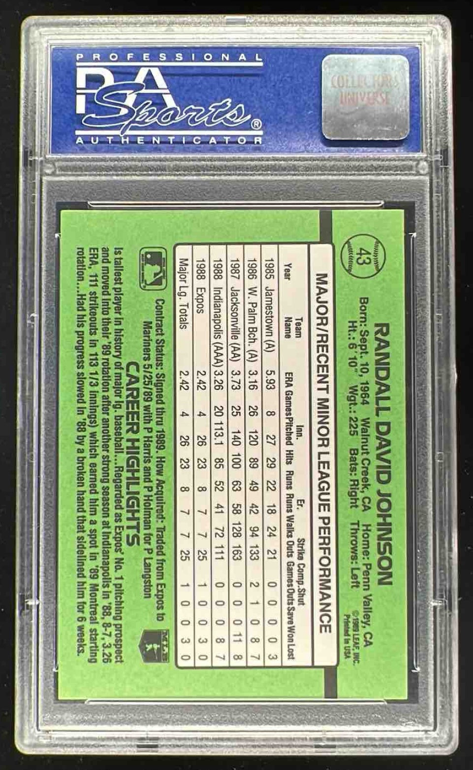 1989 Donruss The Rookies #43 Randy Johnson RC PSA 9