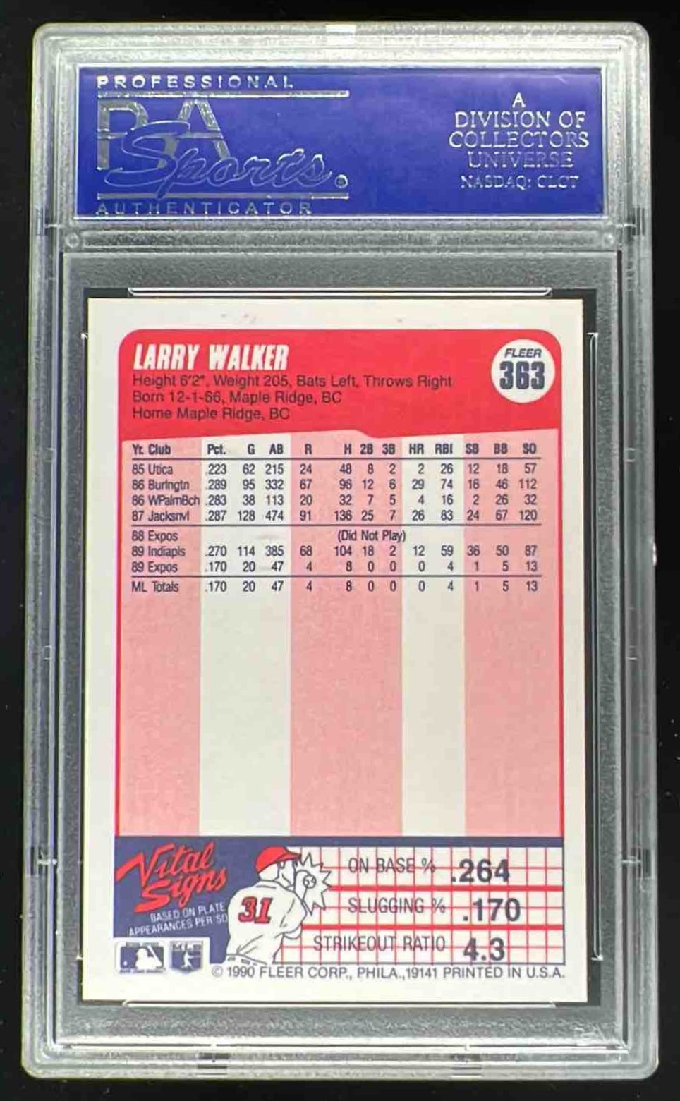 1990 Fleer #363 Larry Walker RC PSA 9