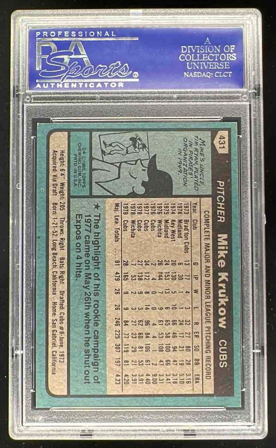 1980 Topps #431 Mike Krukow PSA 9