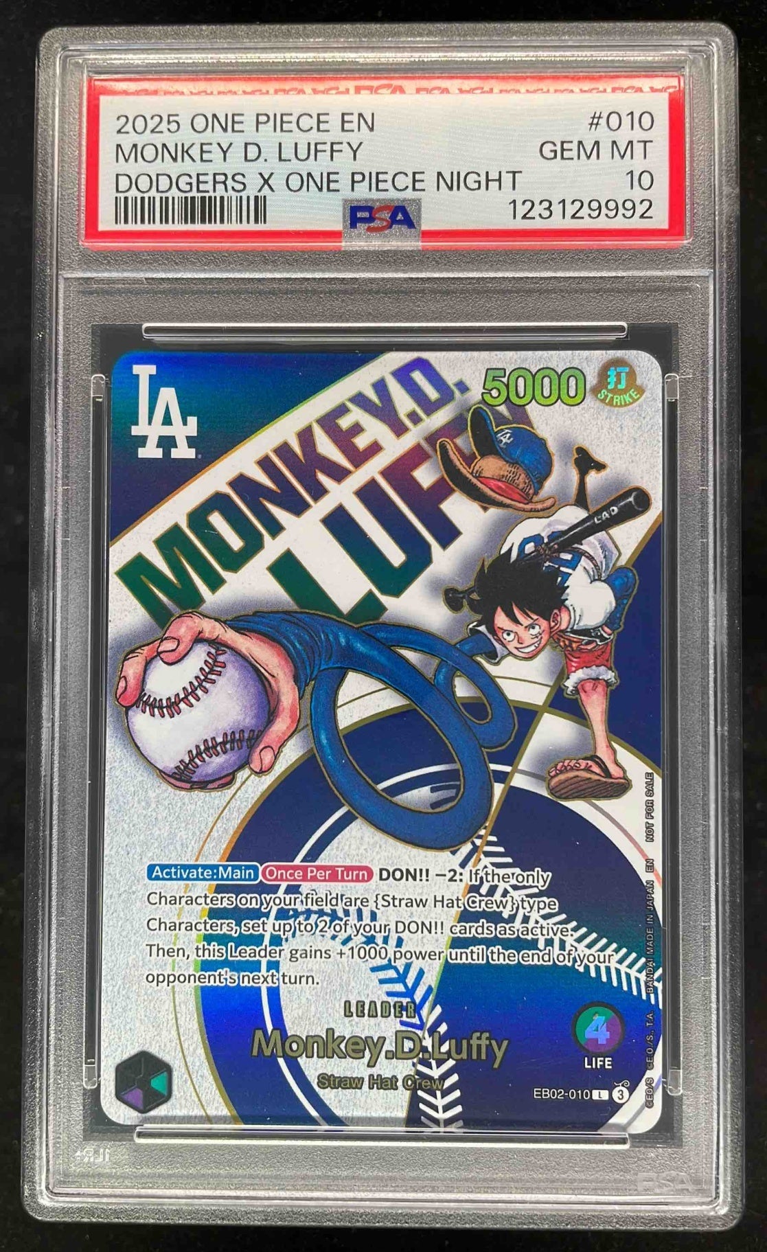 2025 One Piece Promo LA Dodgers One Piece Night Monkey D Luffy PSA 10