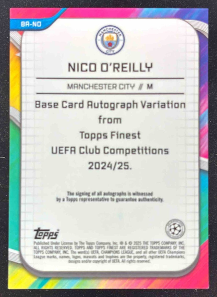 2024-25 Topps Finest Magenta RayWave #BA-NO Nico O'Reilly Autograph Auto /75