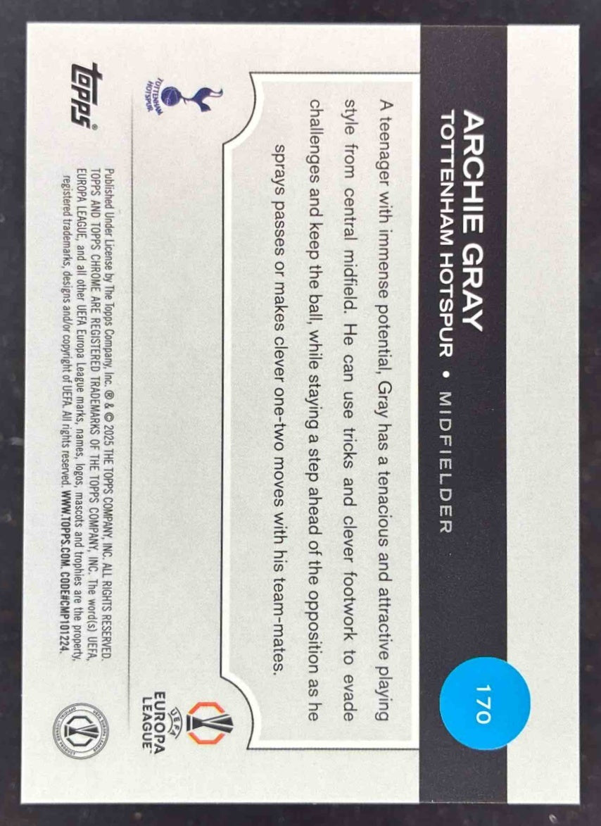 2024-25 Topps Chrome Gold Lava Refractor #170 Archie Gray RC /50