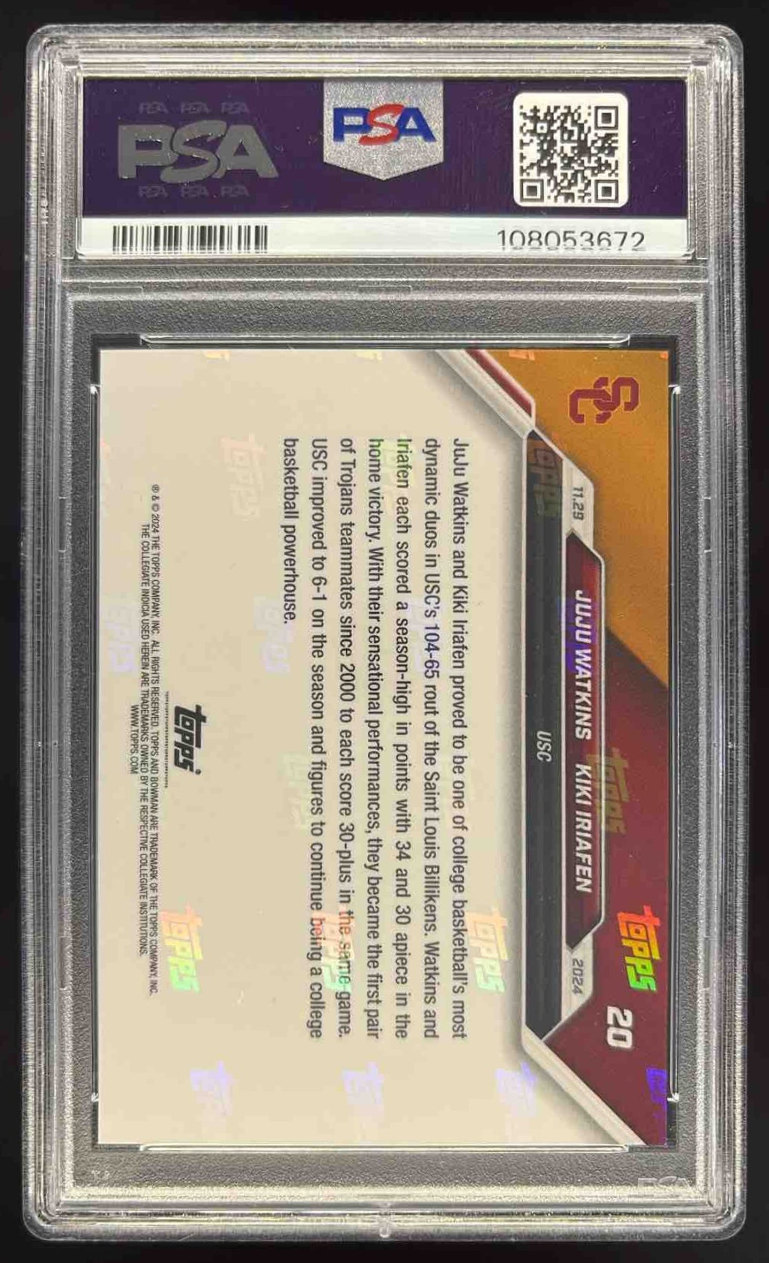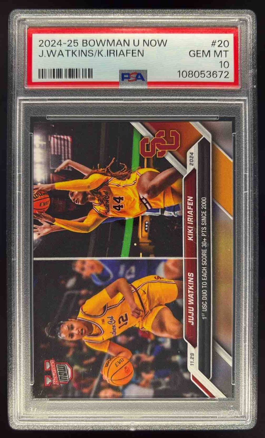 2024 Bowman University Now #20 JuJu Watkins Kiki Iriafen PSA 10