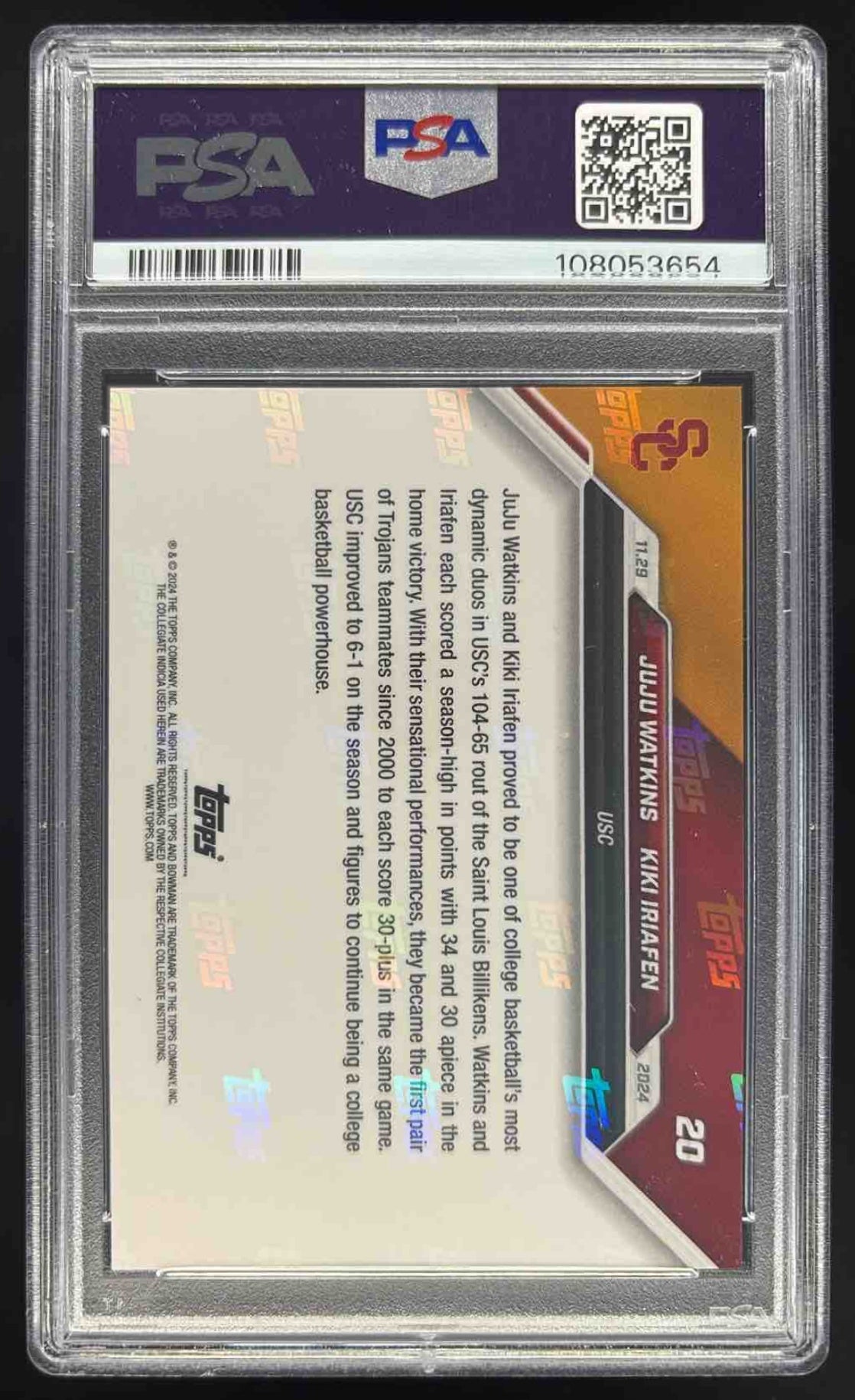 2024 Bowman University Now #20 JuJu Watkins Kiki Iriafen PSA 10