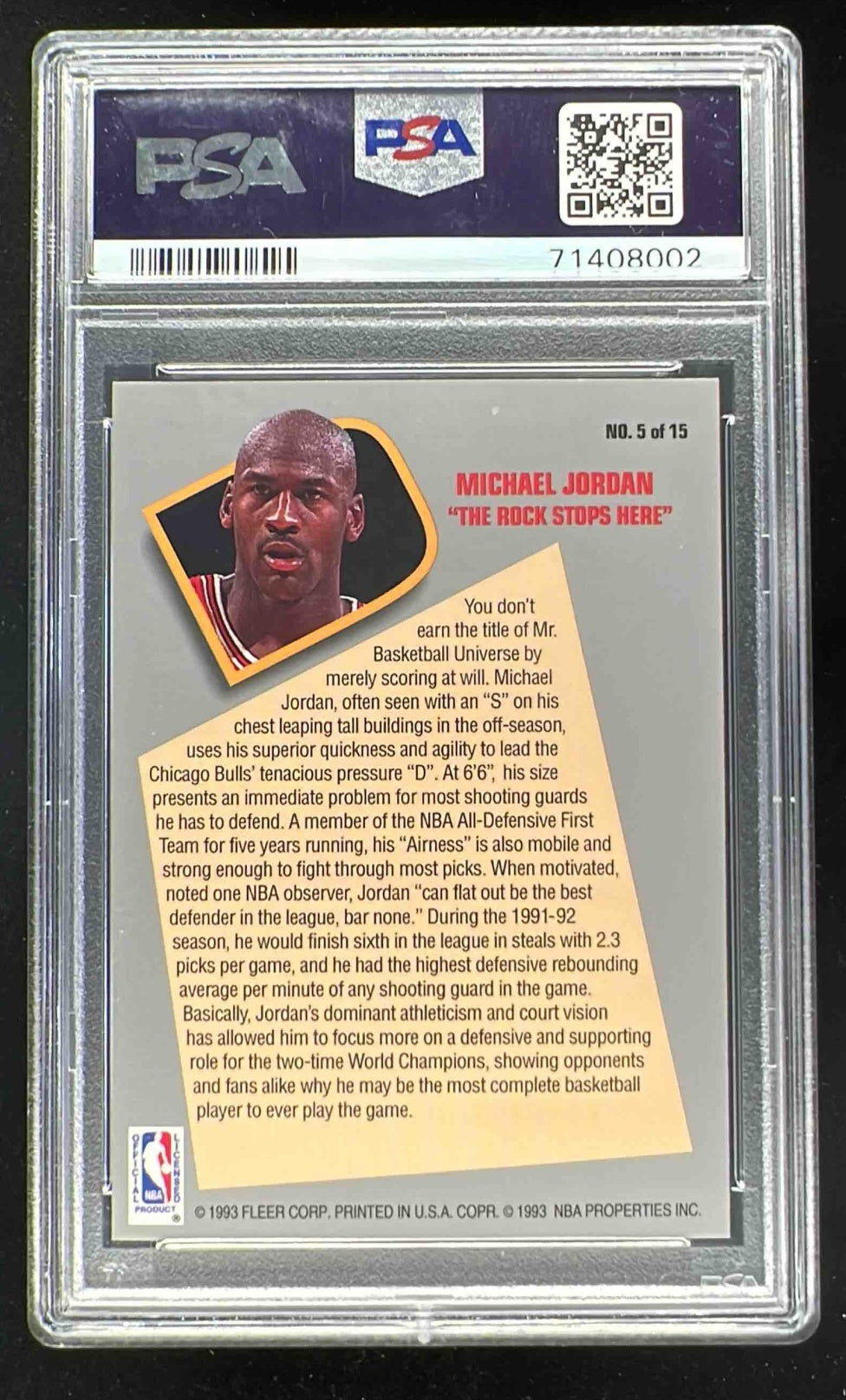1992-93 Fleer Total D #5 Michael Jordan PSA 9