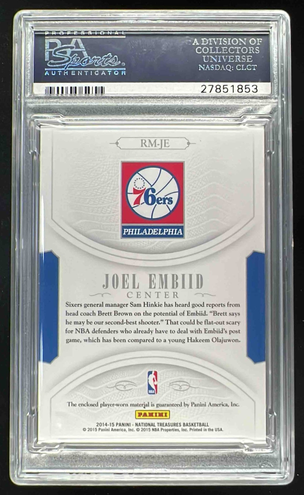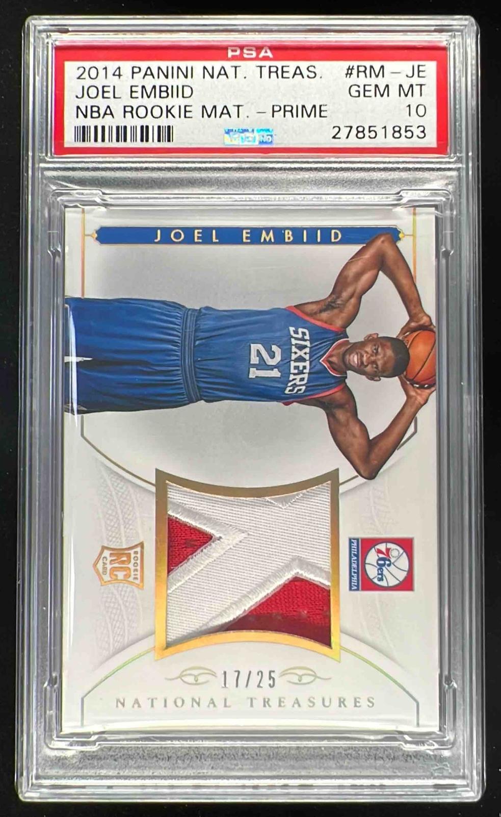 2014-15 National Treasures NBA Rookie Materials Prime Joel Embiid RC /25 PSA 10