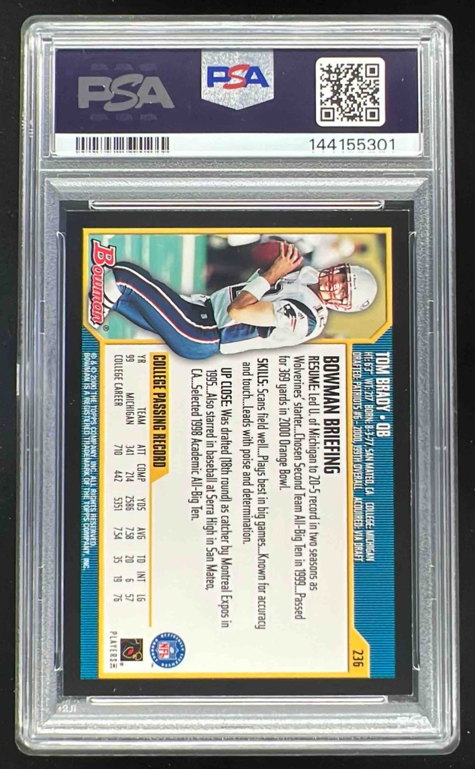 2000 Bowman #236 Tom Brady RC PSA 8