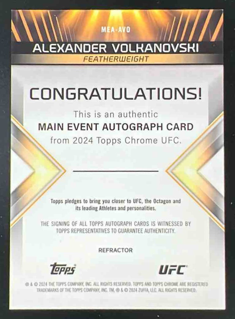 2024 Topps Chrome UFC Main Event Refractor Alexander Volkanovski Auto /150