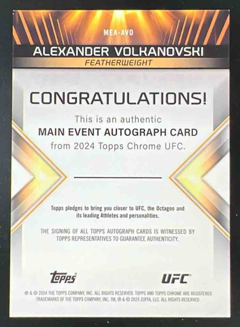 2024 Topps Chrome UFC Main Event Autographs #MEA-AVO Alexander Volkanovski Auto