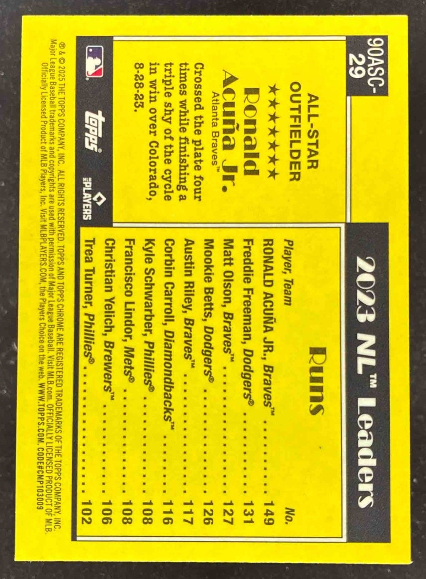 2025 Topps 1990 Chrome All-Star Silver Pack Green #90ASC-29 Ronald Acuna Jr./99
