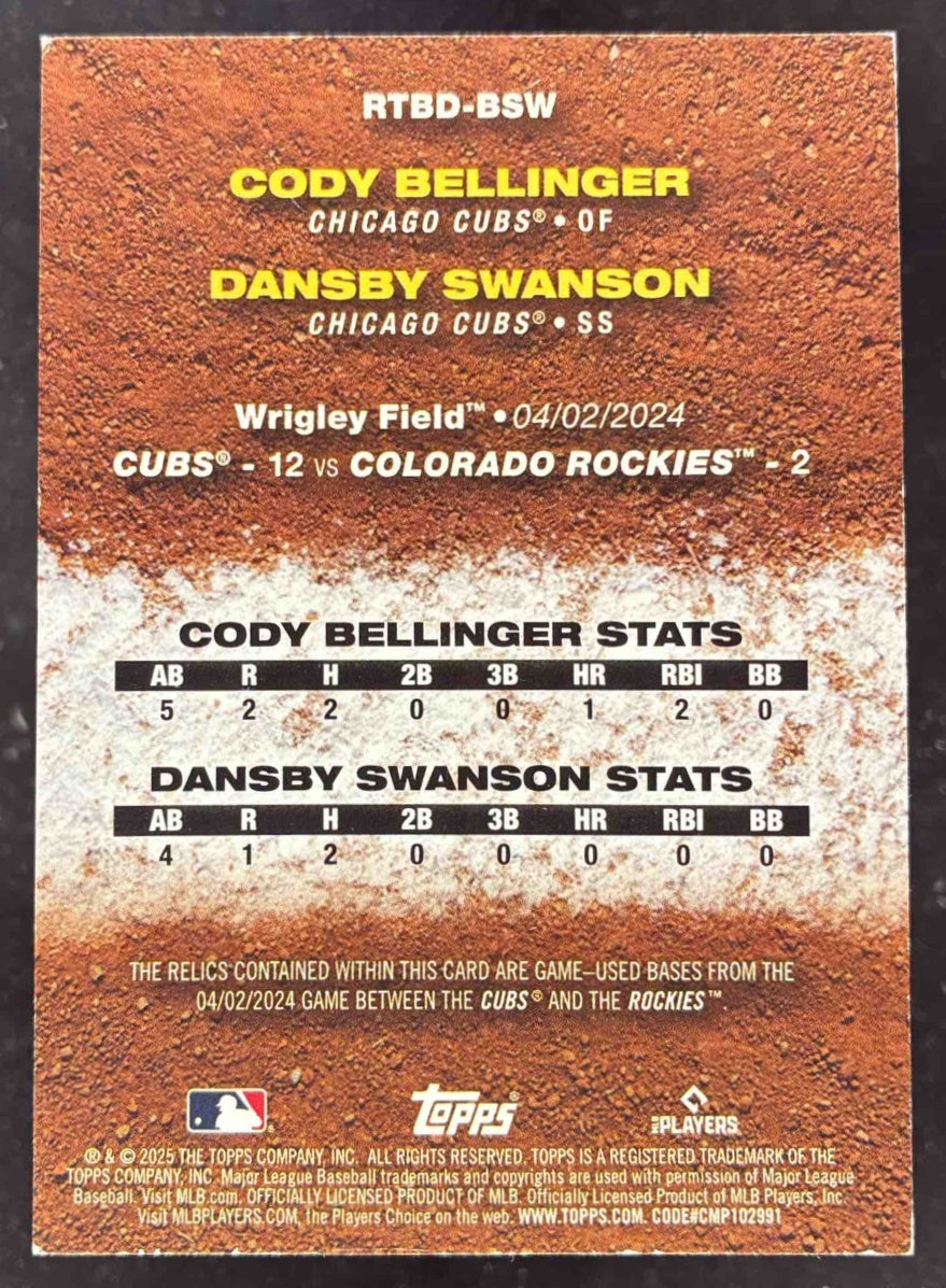 2025 Topps Rounding The Bases Dual Relics Gold Dansby Swanson Cody Bellinger /50
