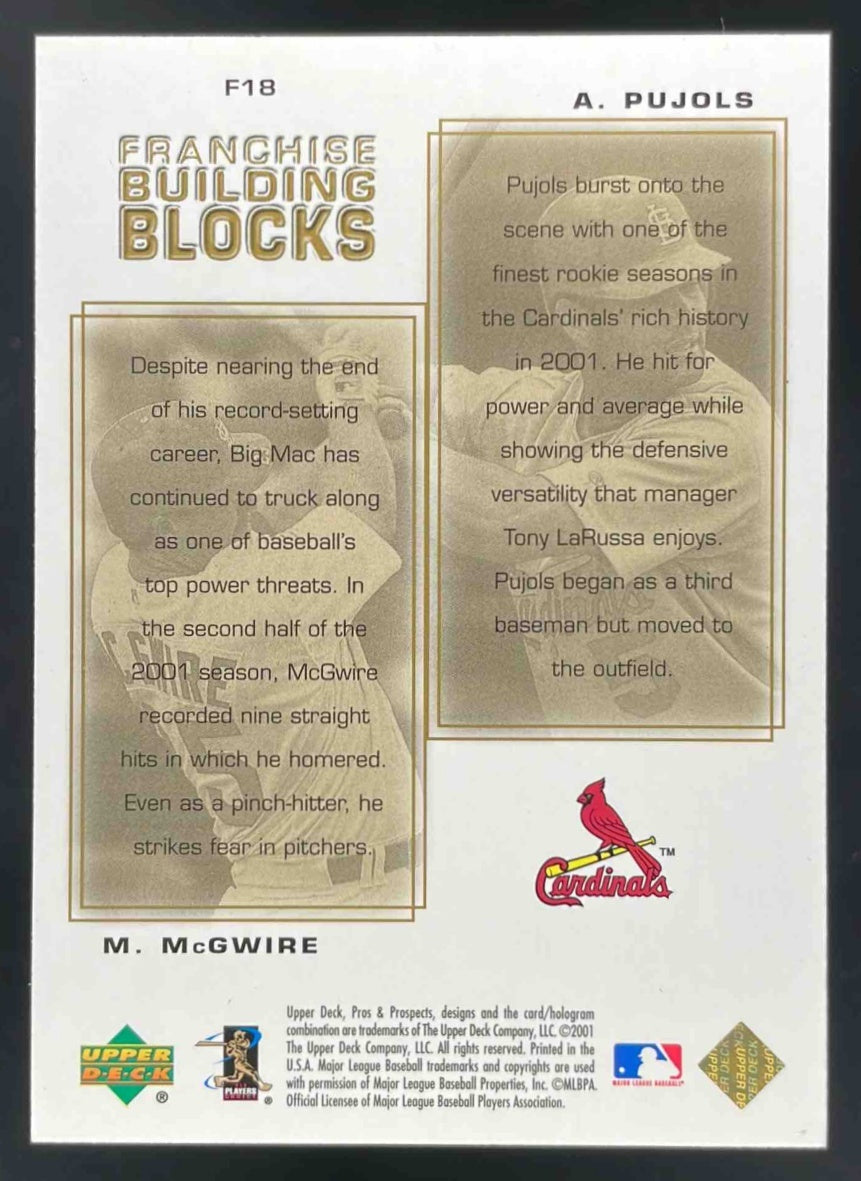 2001 UD Pros & Prospects Franchise Building Blocks Mark McGwire Albert Pujols
