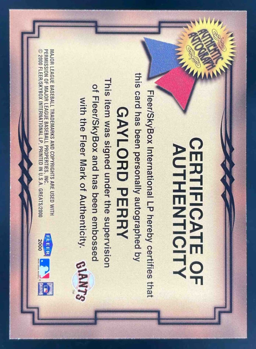 2000 Fleer Greats of the Game Autographs #NNO Gaylord Perry Auto