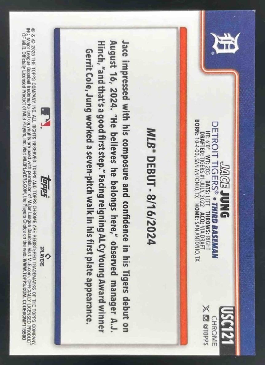 2025 Topps Chrome Update Black RayWave Refractor #USC121 Jace Jung RC /10