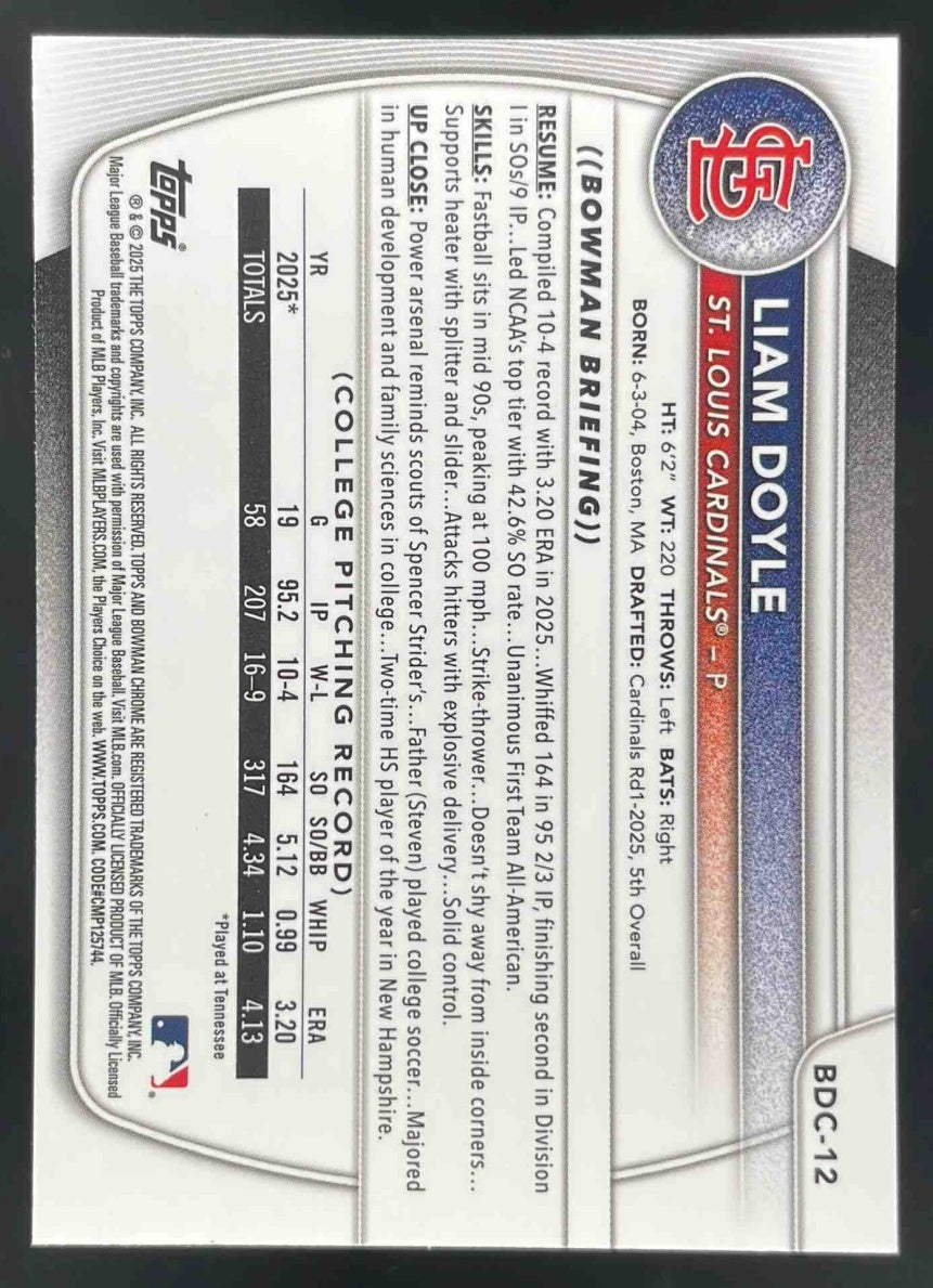 2025 Bowman Draft Chrome Image Variation #BDC-12 Liam Doyle RC SSP
