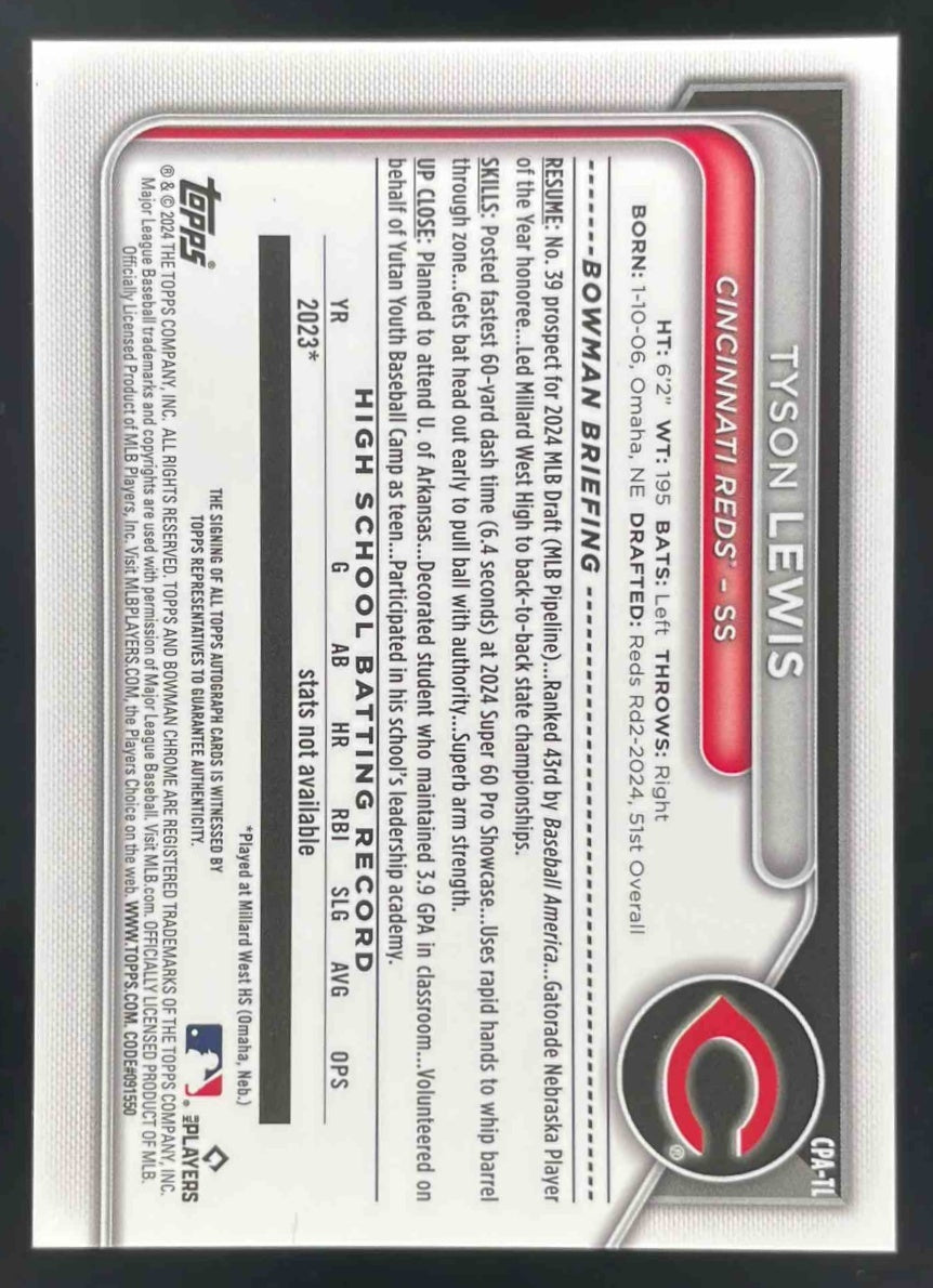 2024 Bowman Draft Chrome Prospect Autographs #CPA-TL Tyson Lewis RC Auto