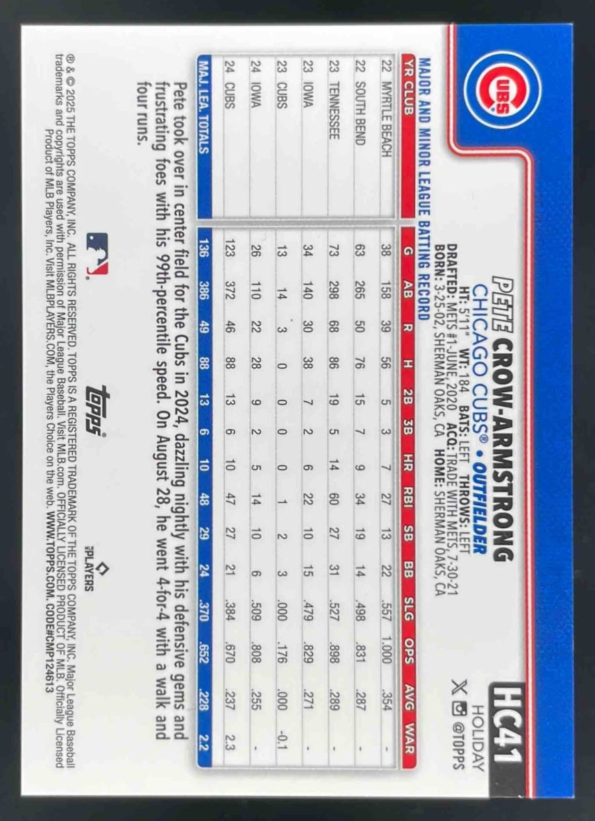 2025 Topps Holiday Chrome Gold Refractor #HC41 Pete Crow-Armstrong /50