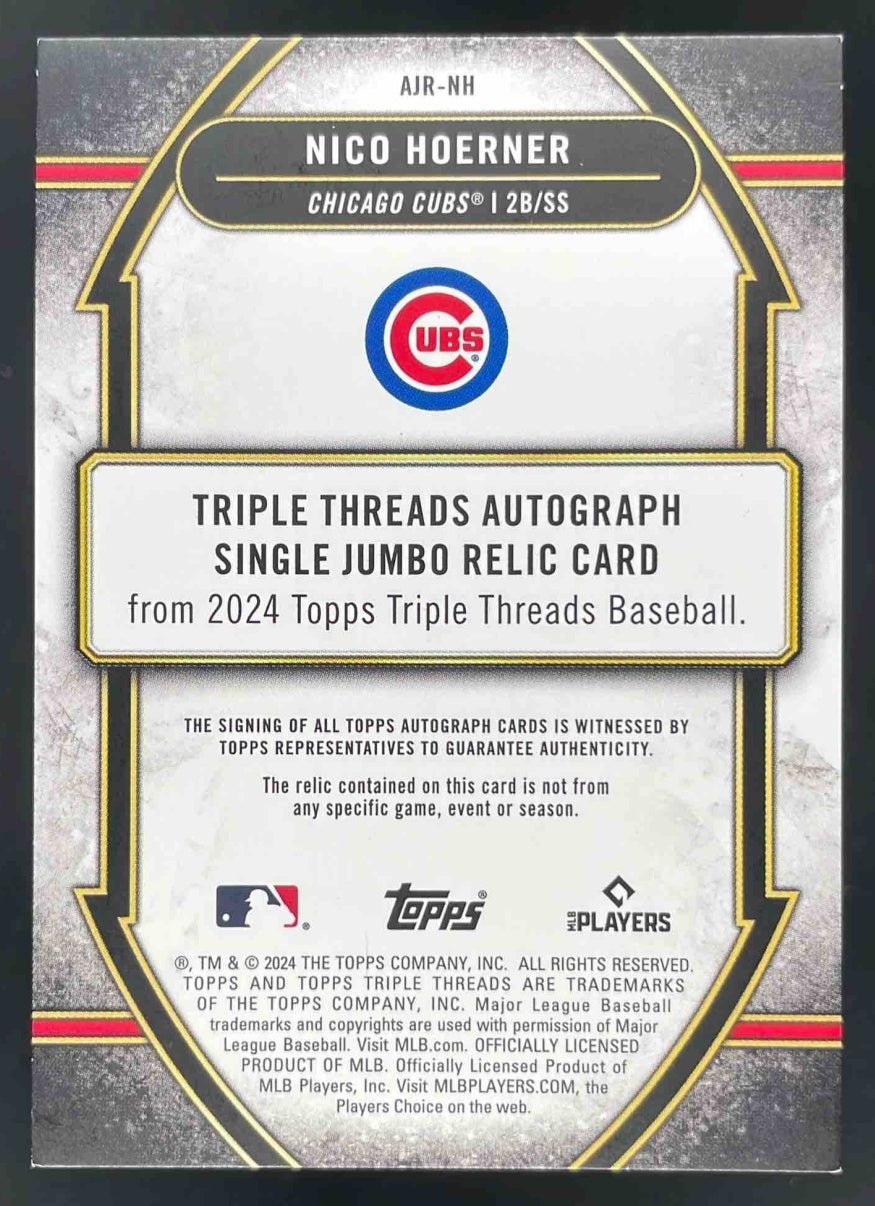 2024 Topps Triple Threads Single Jumbo Relics #AJR-NH Nico Hoerner Auto /99