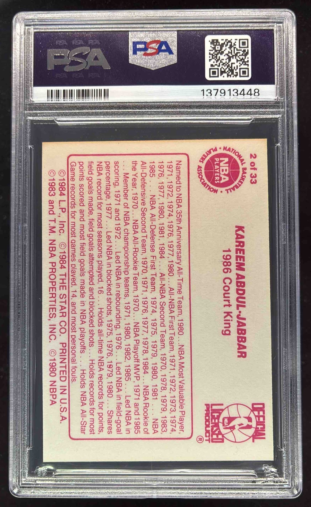 1986 Star Court Kings #2 Kareem Abdul-Jabbar PSA 7