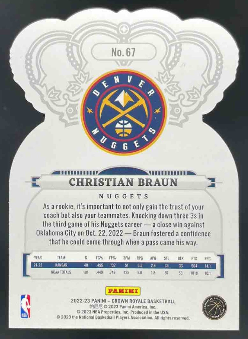 2022-23 Panini Crown Royale Crystal Blue #67 Christian Braun RC /99