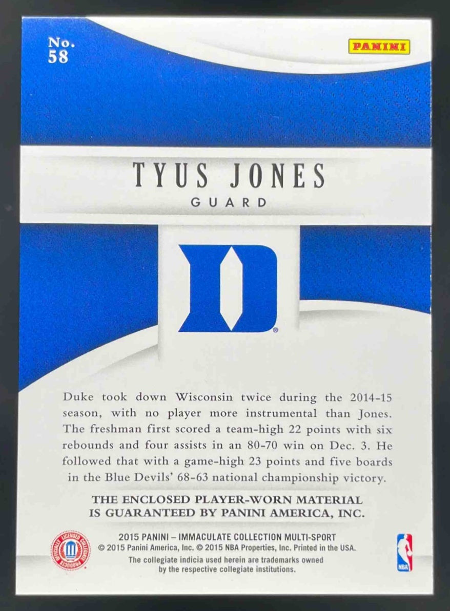 2015 Immaculate Collection Collegiate Multisport Jumbos #58 Tyus Jones /99