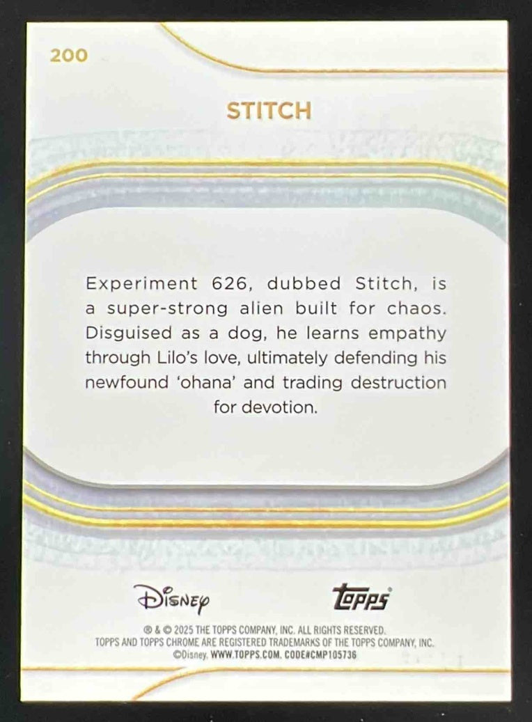 2025 Topps Chrome Disney Mickey Mouse Logo Refractor #200 Stitch /28