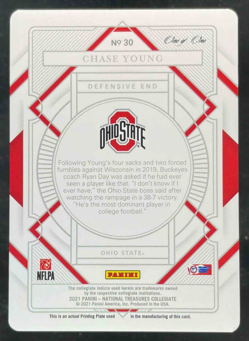2021 National Treasures Collegiate Printing Plate Yellow #30 Chase Young 1/1