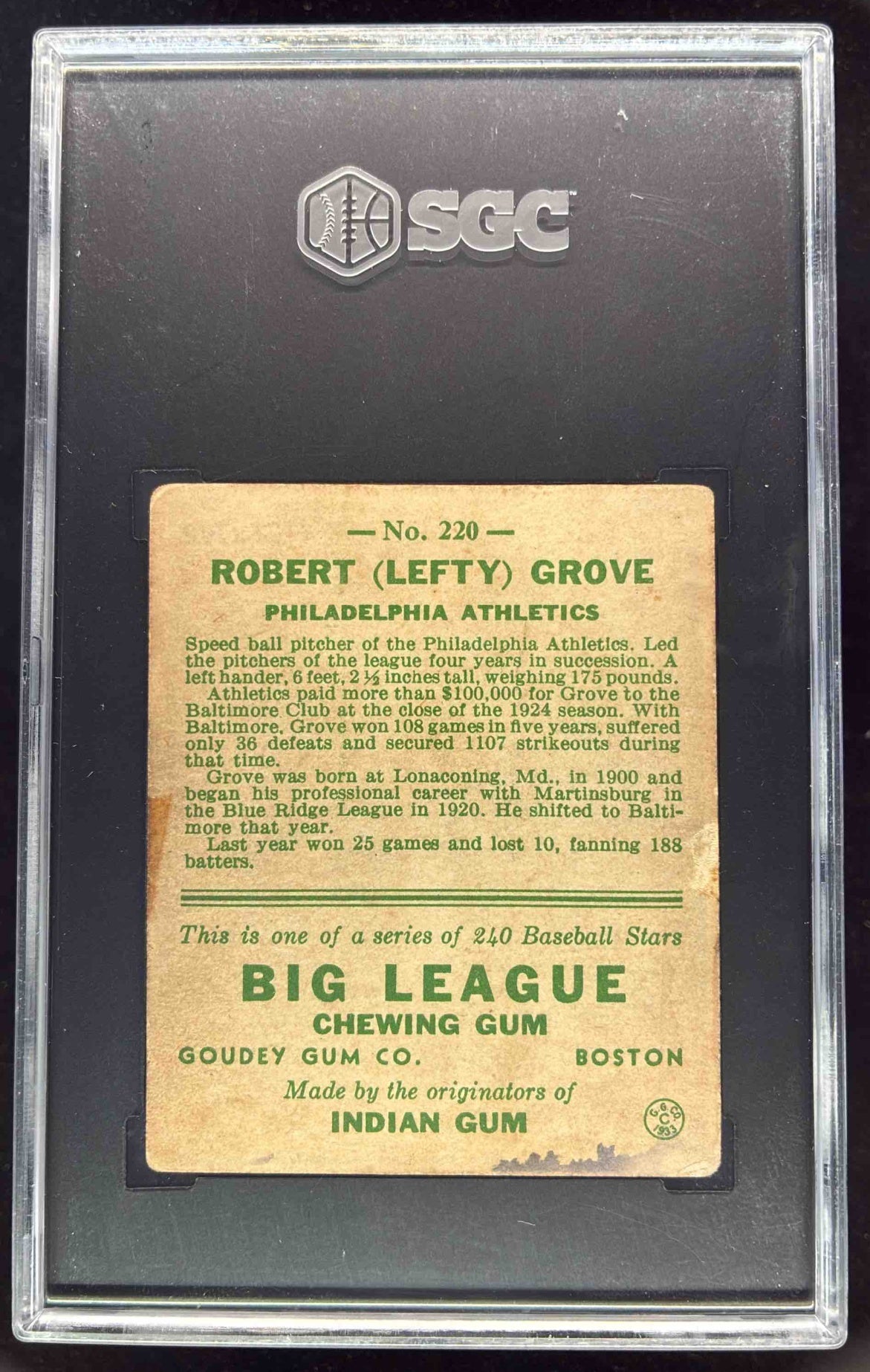 1933 Goudey #220 Lefty Grove RC SGC 1