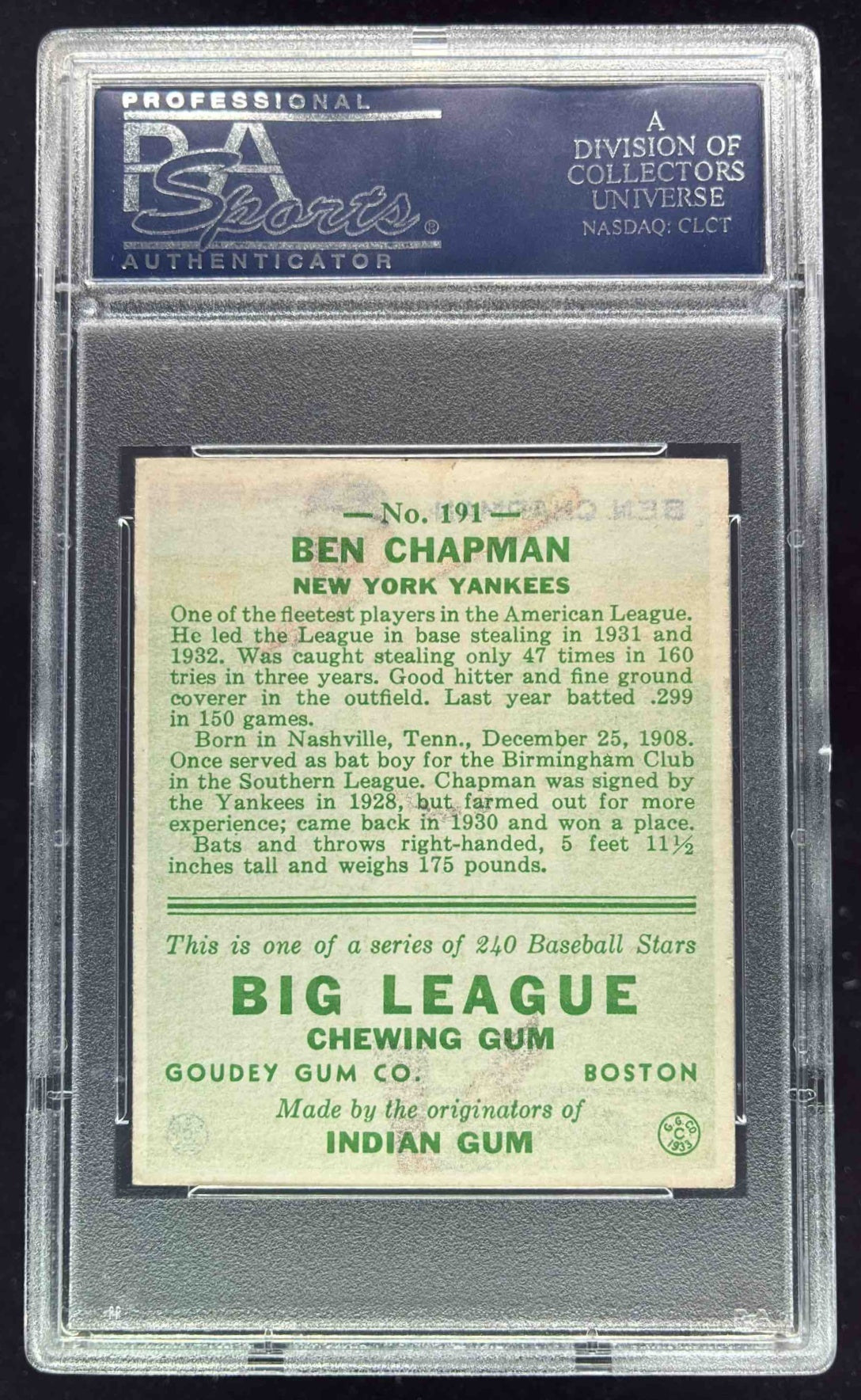 1933 Goudey #191 Ben Chapman RC PSA 5