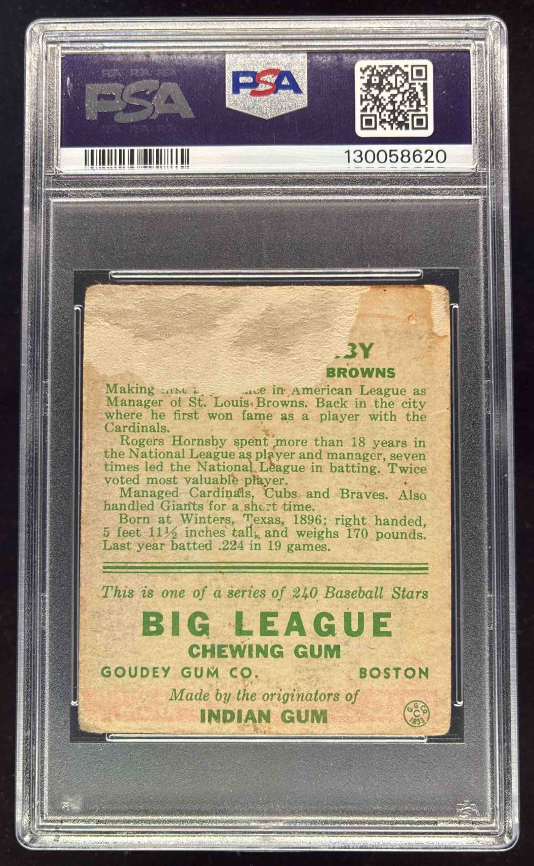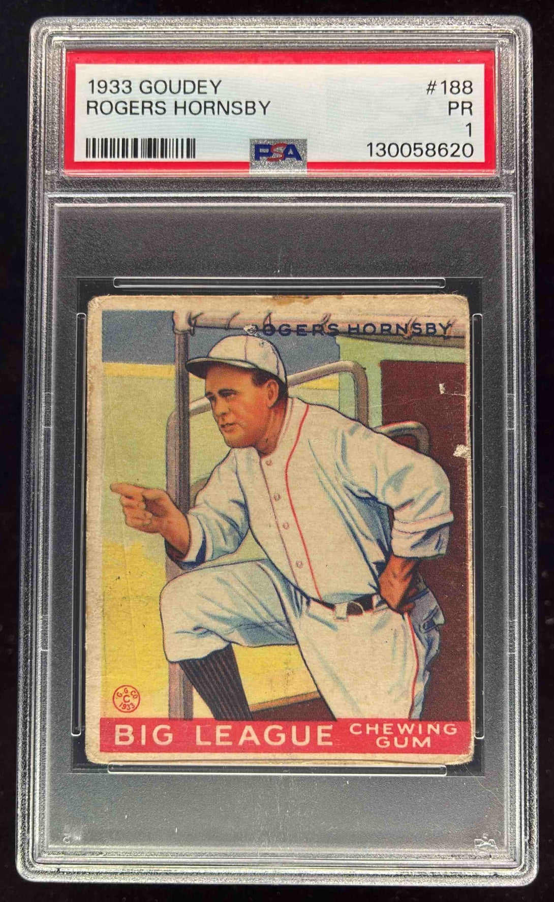 1933 Goudey #188 Rogers Hornsby RC PSA 1