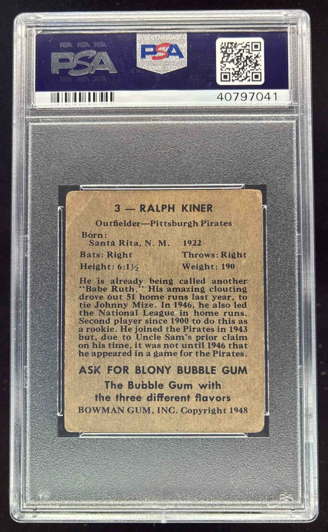 1948 Bowman #3 Ralph Kiner RC Auto PSA Authentic
