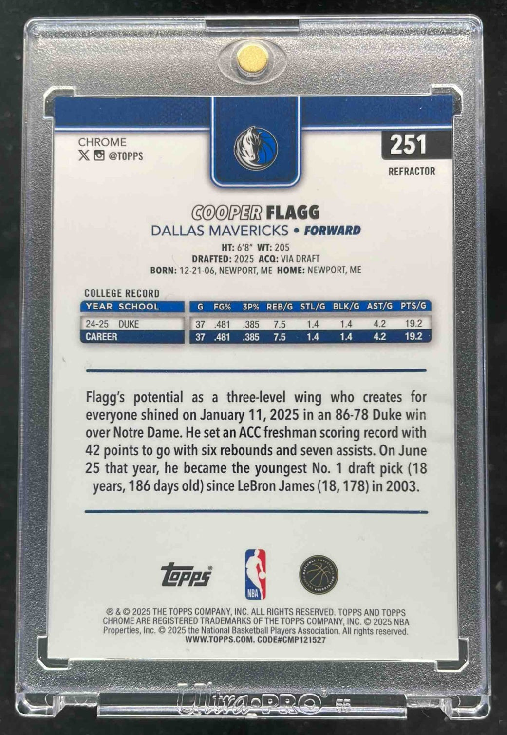 2025-26 Topps Chrome Refractor #251 Cooper Flagg RC