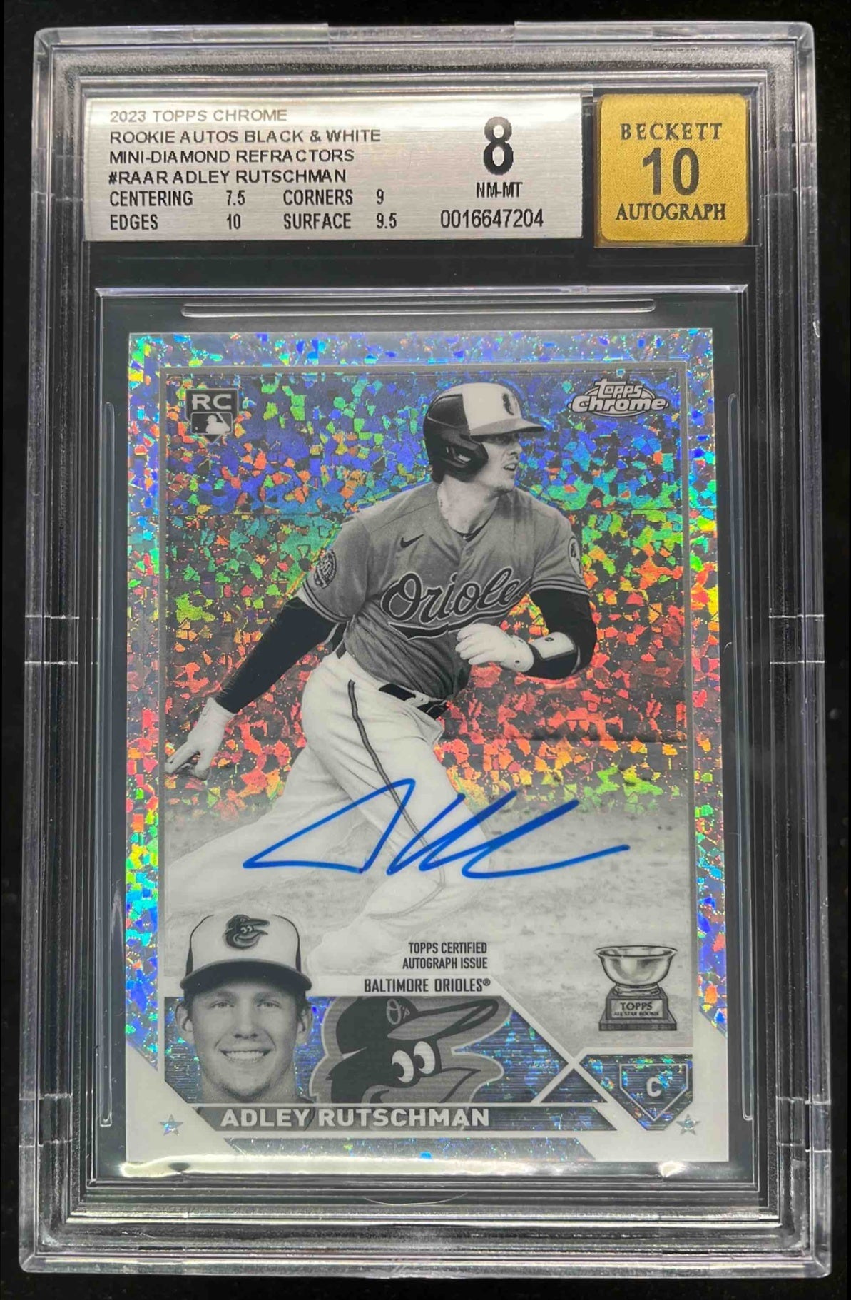 2023 Topps Chrome Rookie Black White Mini Diamond Adley Rutschman RC Auto BGS 8