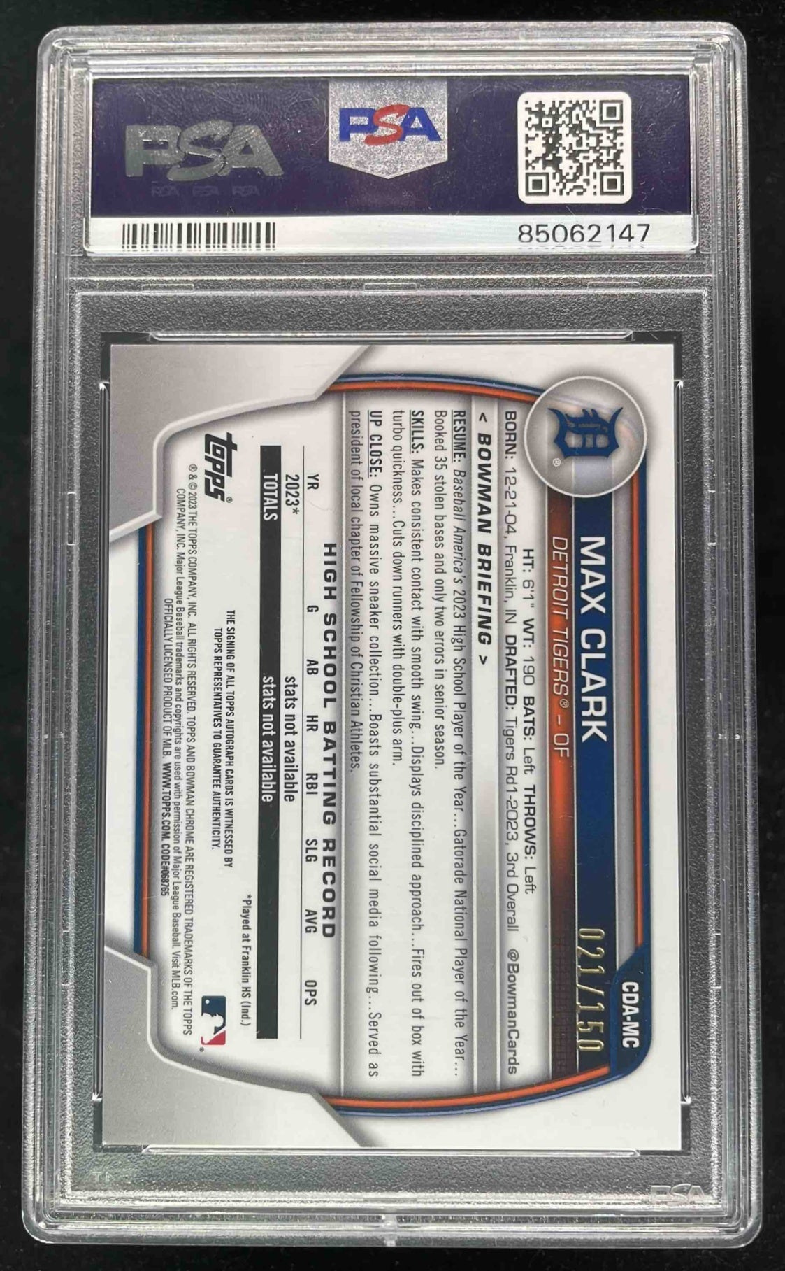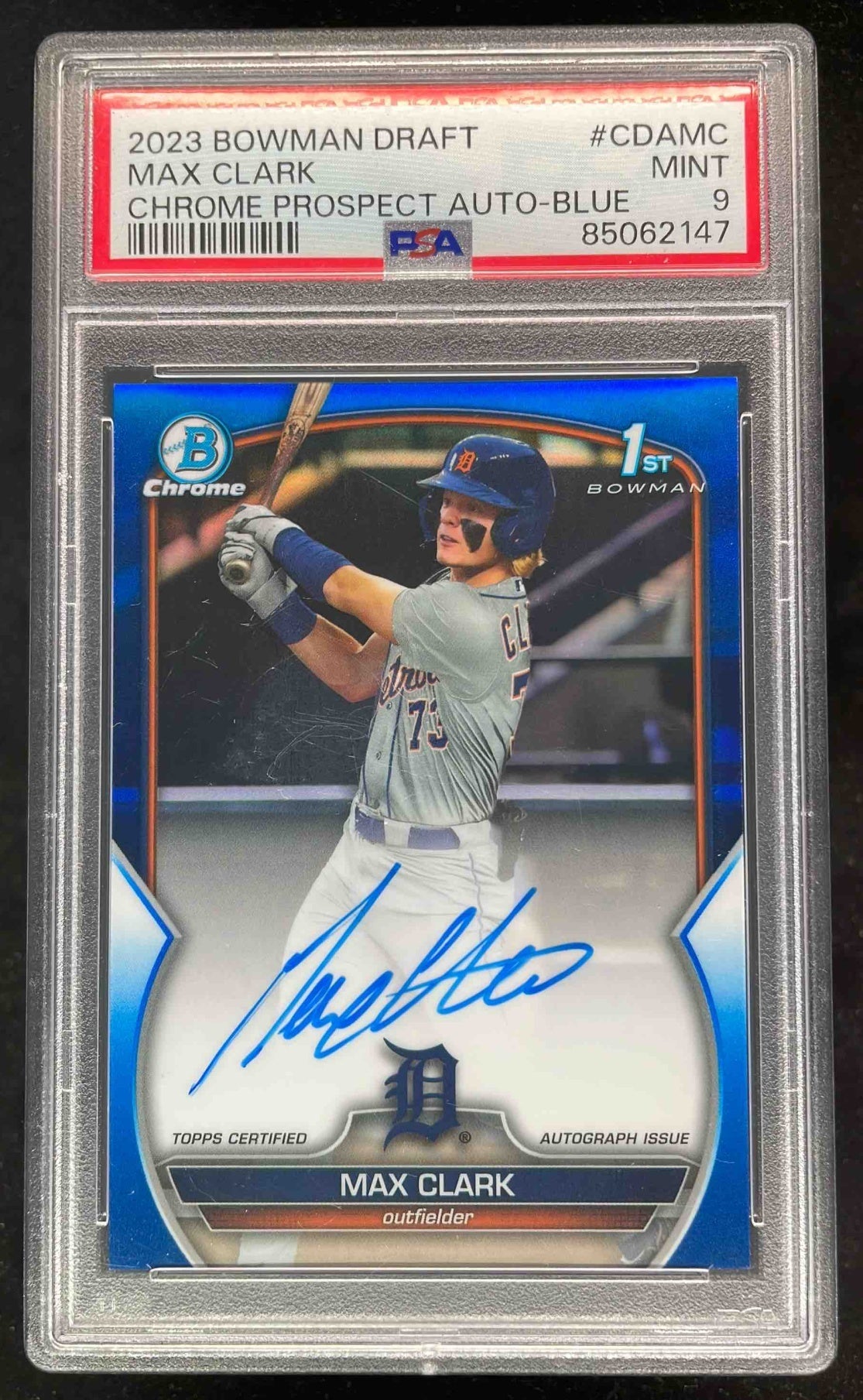 2023 Bowman Draft Chrome Blue Refractor #CDA-MC Max Clark RC Auto /150 PSA 9