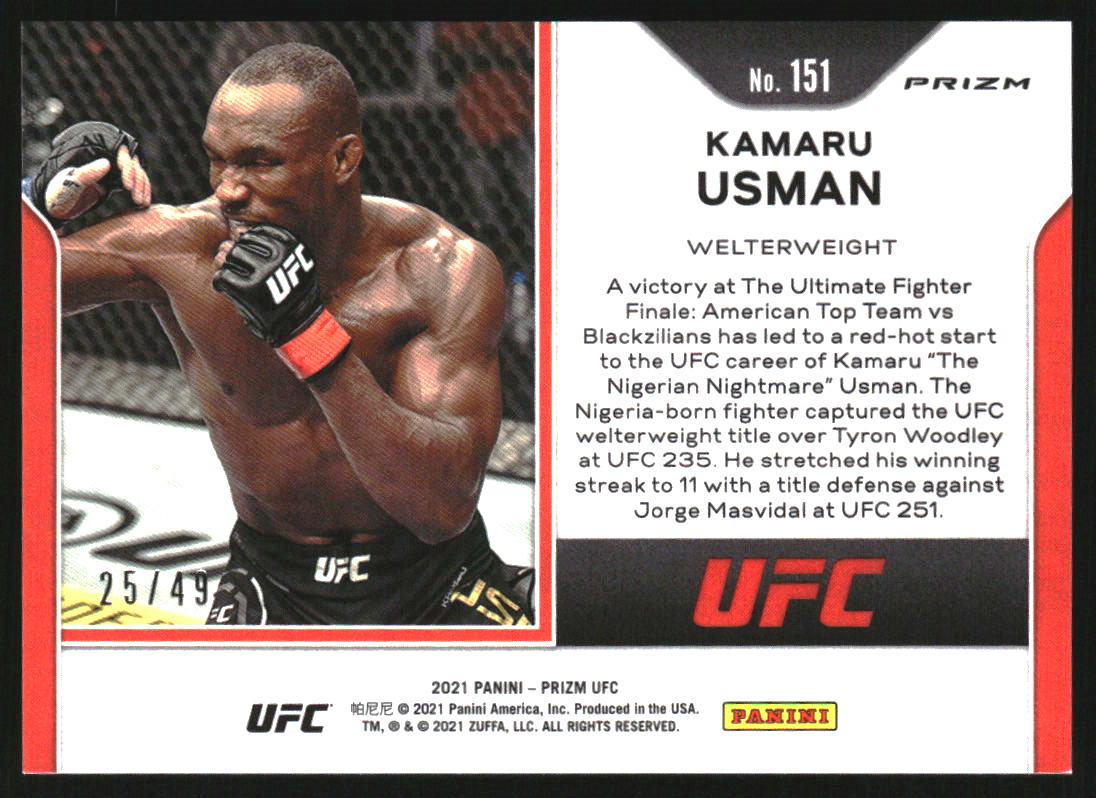 2021 Panini Prizm UFC Prizms Teal #151 Kamaru Usman /49