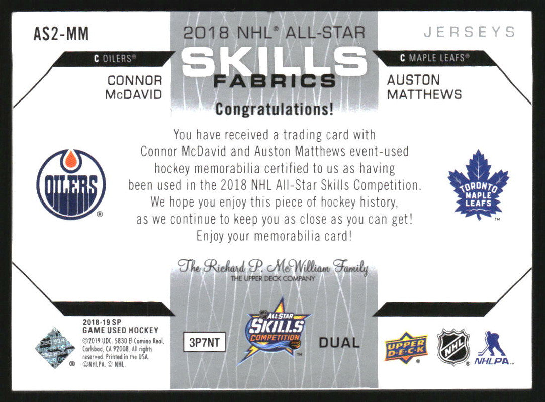 2018 SP Game Used All Star Skills Fabrics Dual Connor McDavid Auston Matthews